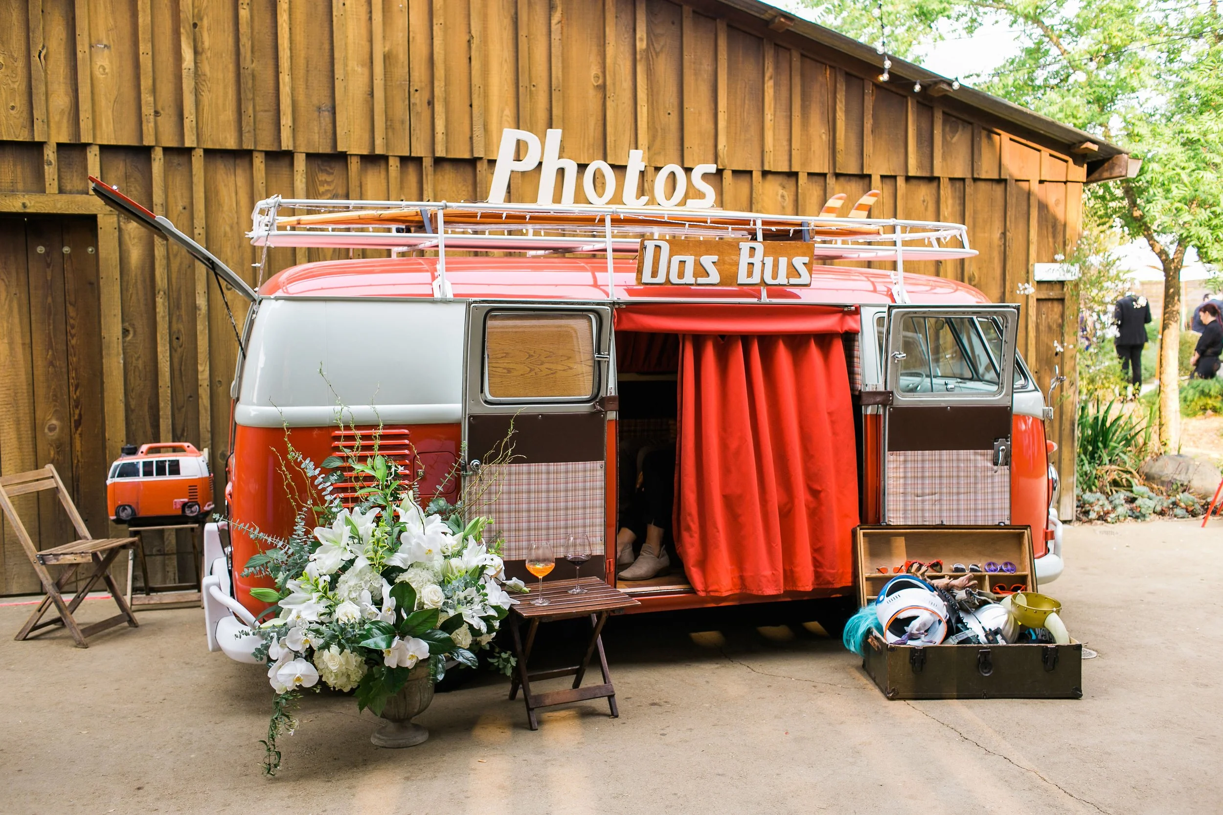 Das Bus Wedding Photo Booth at Nestldown in Los Gatos, California. Photo by Jake and Necia Photography